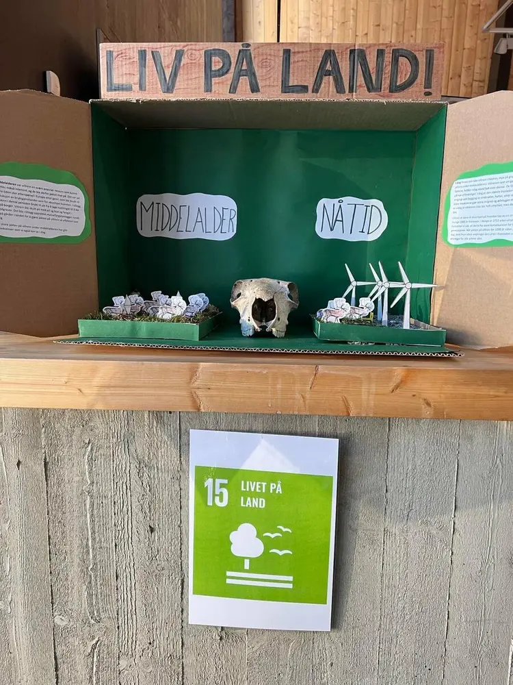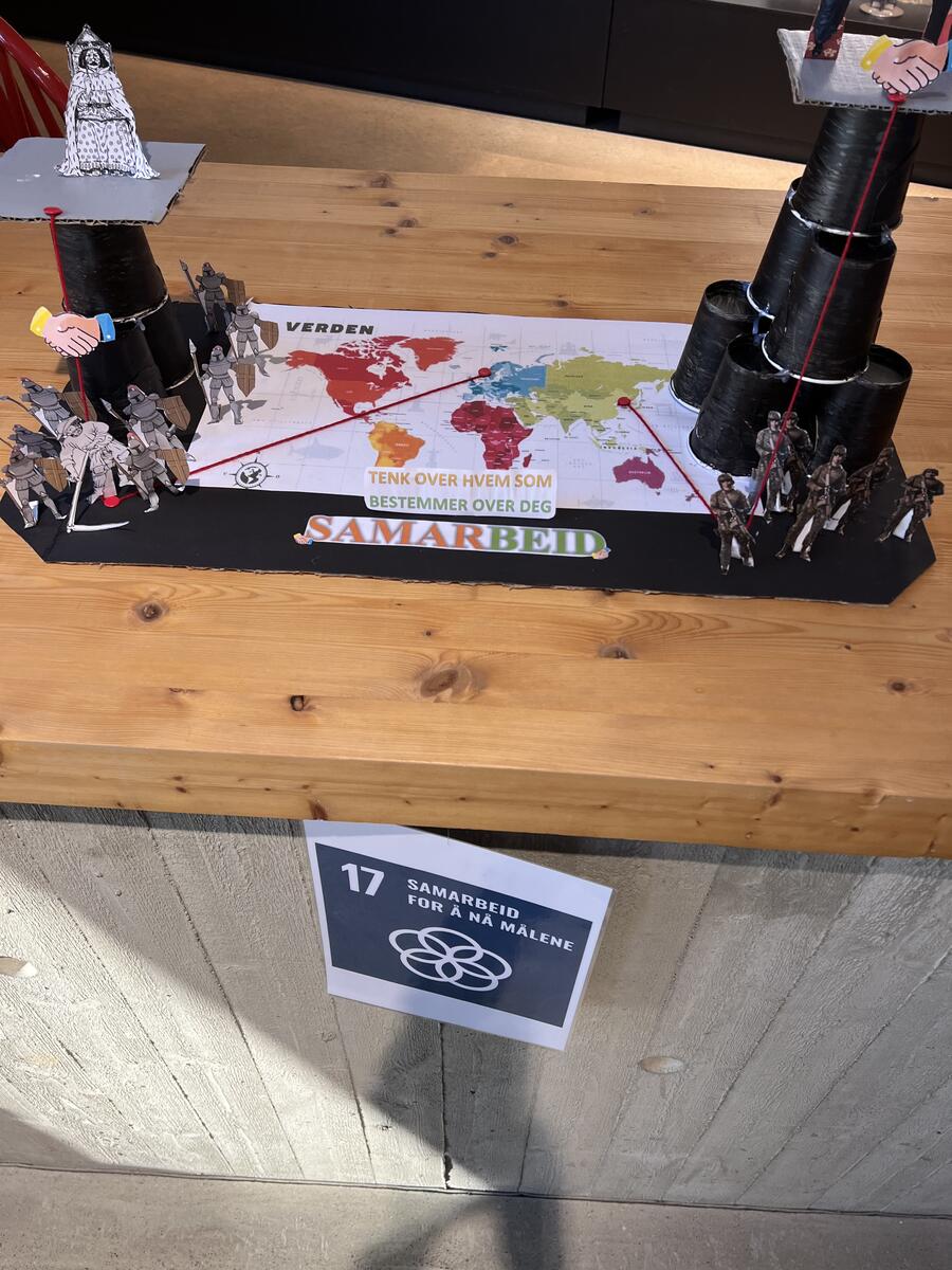 Kring 60 elevar ved Valdres vidaregåande har laga utstilling om FNs 17 berekraftsmål. 17 ulike produkt seier alle noko om før og no, med ein appell til oss menneske i dag. Er det noko vi bør gjere annleis for livet på jorda?