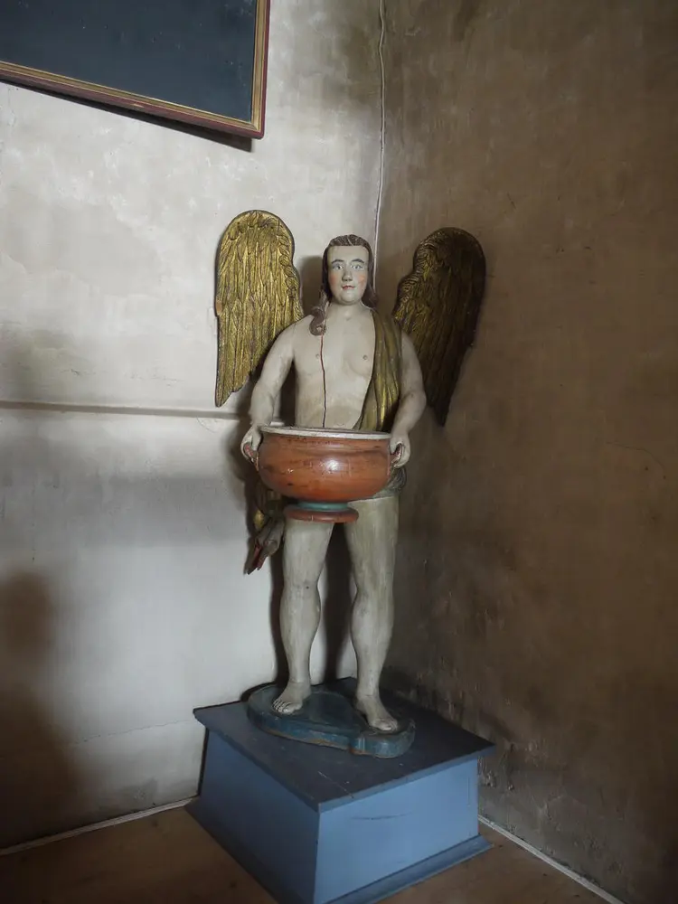 I dag har vi bevart over femti dåpsenglar i norske kyrkjer. Tre av dei er i Valdres og er av dei stiligaste! To av dei står med hankebollar i hendane, og dei er lettkledde, staute karar. Den eine står og skin i kyrkja i Bruflat, medan den andre står litt trekt attende på ein sokkel av tre i Ulnes-kyrkja. I Ulnes har vi i tillegg ein litt nyare, yndig knelande dåpsengel laga av bilethoggaren Ole Fladager. To dåpsenglar i same kyrkje er uvanleg!
