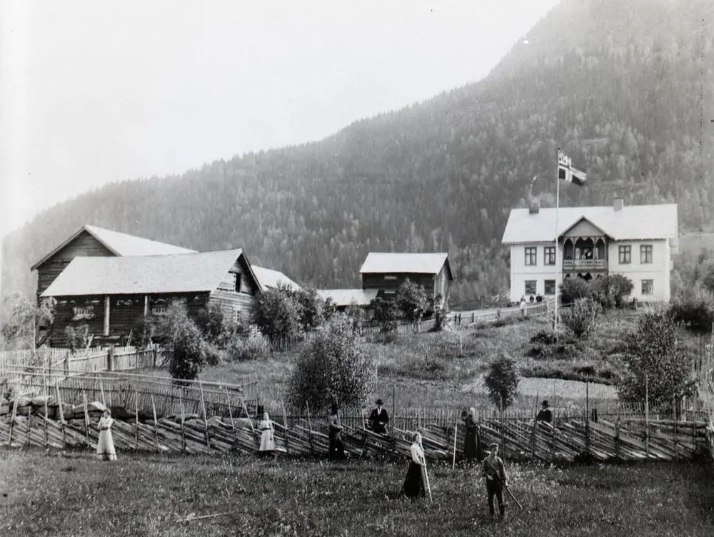 Fotoarkivar Bettina Walser Garmann presenterer fotoarkivet ved Valdres Folkemuseum. Her er eit mangfaldig utval av bilete frå heile Valdres, av menneske og landskap, kvardag og fest. Bettina vil òg gje gode tips til korleis ein best mogleg kan nytte søkeverktøyet på DigitaltMuseum.no. Fotoet over er tatt fyrst på 1900-talet, under ei slåttonn på Øvre Nes på Fagernes. Ukjent fotograf. VFF 4-000062.