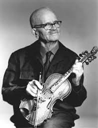 Knut Ø. Rudi (1878 - 1972) med sin beste fiolin. Knut laga fleire enn 200 langeleikar. - 2/3