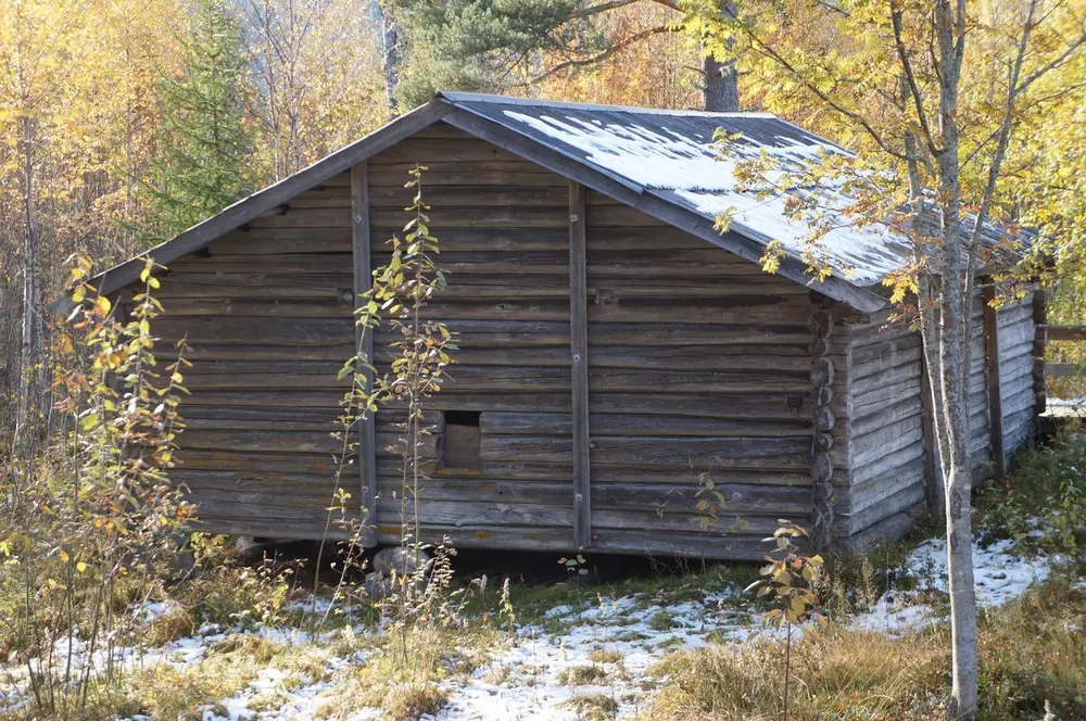 Låve frå Storrustebrenna, med hestevandring frå Sørlibakken. Hestevandringane var ei viktig verktøy for å få hesten til å dra treskeverka som stod inne på låven. Hesten gjekk i ring med eit "uenderleg belte". Slike var vanlege i Valdres frå kring 1830 til kring 1930. Dag Lindbråten - 2/4