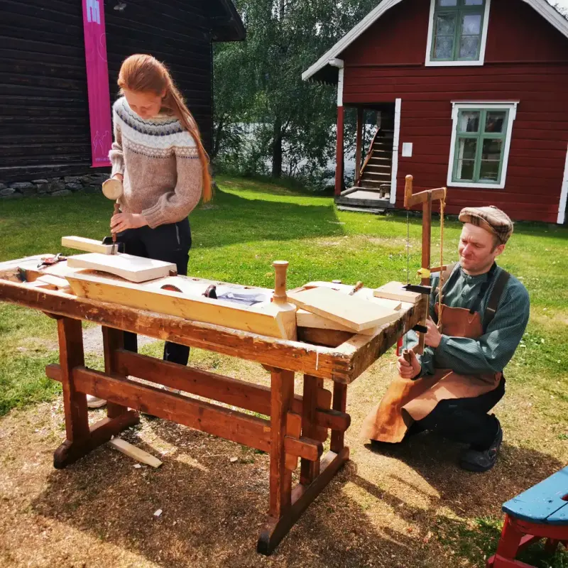 Gjennom ungdomskurs og sommarjobb m/mentor har Ingeborg fått bygge langeleik, snekre fjøskrakk, binde børster, smi munnharpe og lafte hus. Dette som del av gjennom "Kloke hender - unge talent", støtta av Sparebankstiftelsen DNB.