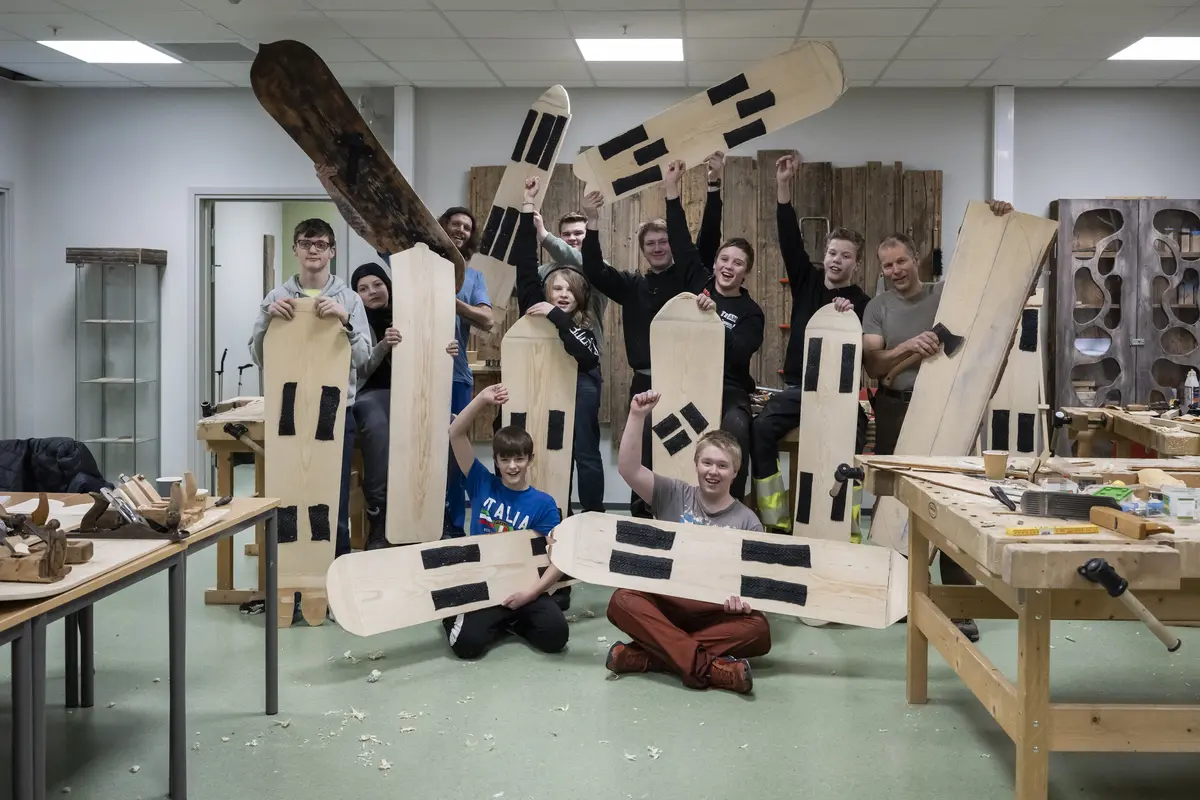 I løpet av tre dagar har elevane moglegheit til å lage sitt eige snøbrett. Truleg er det litt snø, slik at vi får testa bretta til slutt. Dette undervisningsopplegget skjer på den enkelte skule - så sant skulen har høveleg verkstad - der kvar elev kan arbeide på eigen plass. Ta kontakt ved spørsmål rundt verkstadfasilitetar.