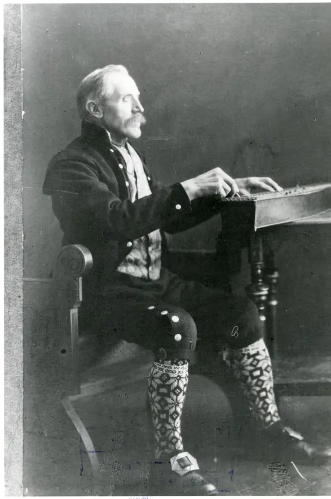 Langeleikspelaren Ola Brenno frå Bagn. Ukjent fotograf. VFF 4-000463. - 2/3