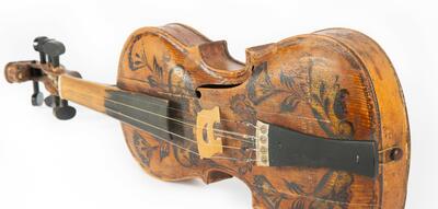 To av skrina ber signaturane Ola Tollevsen 1847 og Ole Arnessen Helle 1874. Det siste skrinet har tilhøyrt spelemannen Iver Guttormsson (fødd cirka 1800) frå Vestre Slidre. Foto av Knut O. Melby «Hellebør-Knut» (1823–1904) og kona Barbo O. Berge (1831–1910) frå Øystre Slidre. Knut var skreddar og spelemann og eigar av Blilistuten. Fela var i slekta fram til 1967.