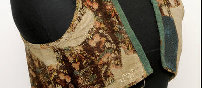 På 1700-talet fall kvinnene i Sør-Valdres for dei moterette blomane. Skøyteliv, trøyer og luer kom i silke, sateng, kalemank og stormønstra ull-lerret. Verda hadde nådd ein europeisk utpost i nord. Frå venstre klede etter Olaug Storruste Holte (1764–1861), fødd på Storruste i Hedalen, gift til Holte i Nes i Ådalen. Ho ber liv i raud og kvit kalemank, trøye i trykt kattun, lue i brosjert silke og stakk i moirébehandla barkan med trykt mønster.