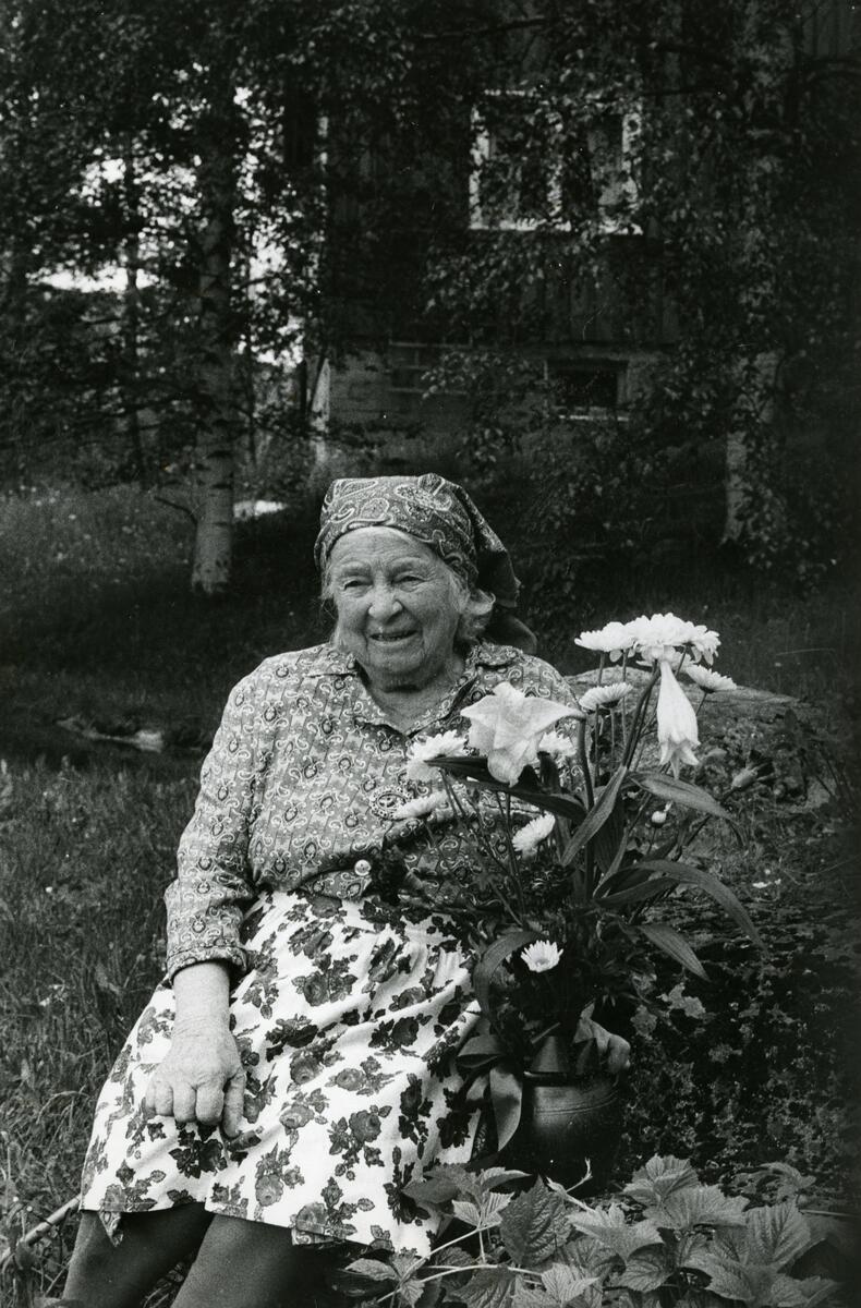 I 1985 fekk ho Sør-Aurdal kommunes kulturpris. Biletet er take i hagen heime i «Kvila».