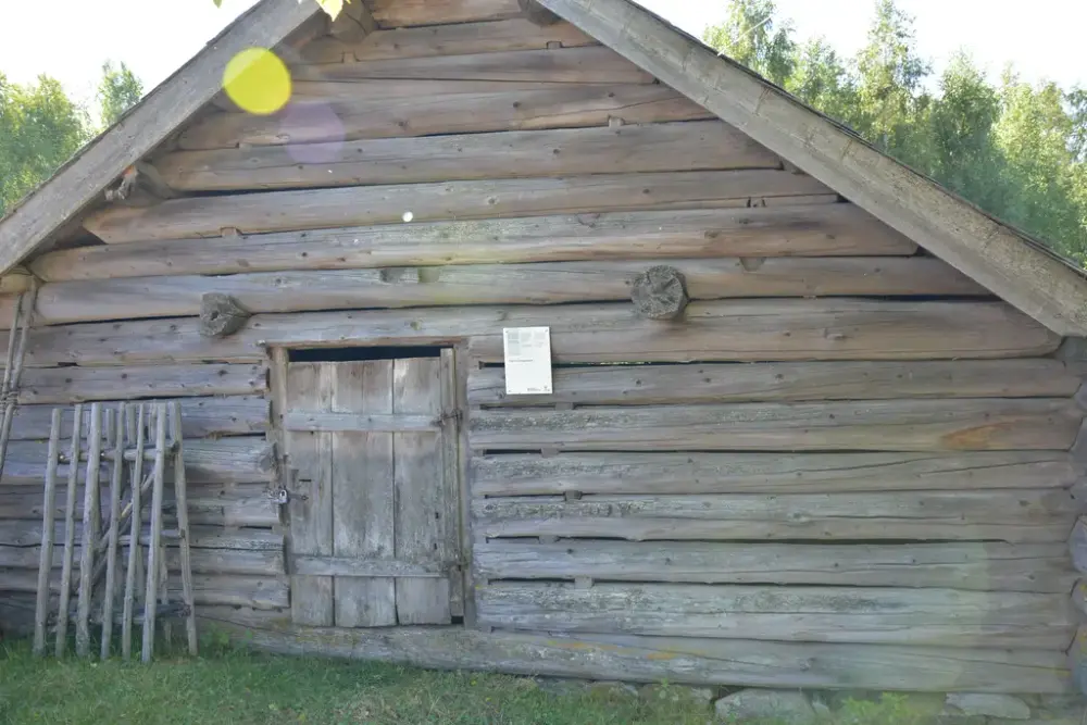 Todelt seterbu frå Svartfjell / frå Sør-Aurdal, med sjåglugger, åre, ljore og ljore i eldbua, og mjølkebu bygd inntil. Haustseter for garden Steinsrud i Sør-Aurdal, bygd kring 1775. - 4/9