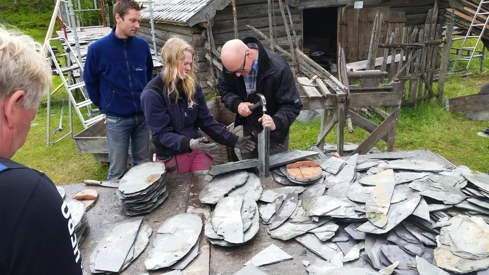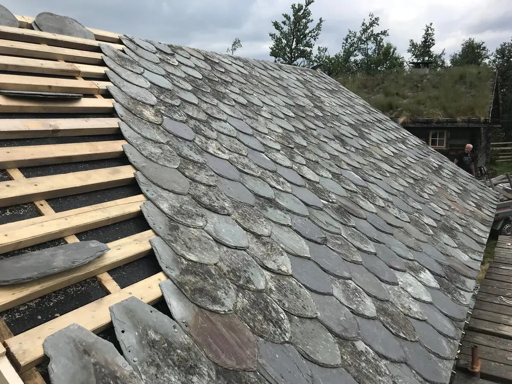 Me skal fortsetja tekkinga av det nyleg oppsatte klavesneihuset på Valdres Folkemuseum. Det vert tekking med skifer på lekt der all skifer er «like stor», det vert også tekking med eldre skifer som er «skanta» og storleiken då kan variera noko meir. Denne vert å legga rett på taktroa.