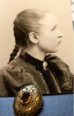 Jenta på fotografiet under har på seg ei brosje. Valdres Folkemuseum får no denne nåla i gåve. Eigaren var den døvblinde husmannsjenta Ragnhild Kaata frå Røn.